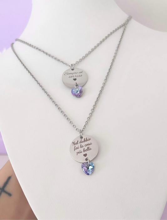 Collana 60 cm con ciondolo a cuore più due ciondoli personalizzabile con una tua foto o frase