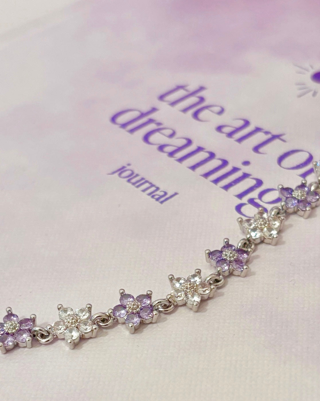 formata da 20 fiorellini zirconati lilla e bianchi da fare 20cm