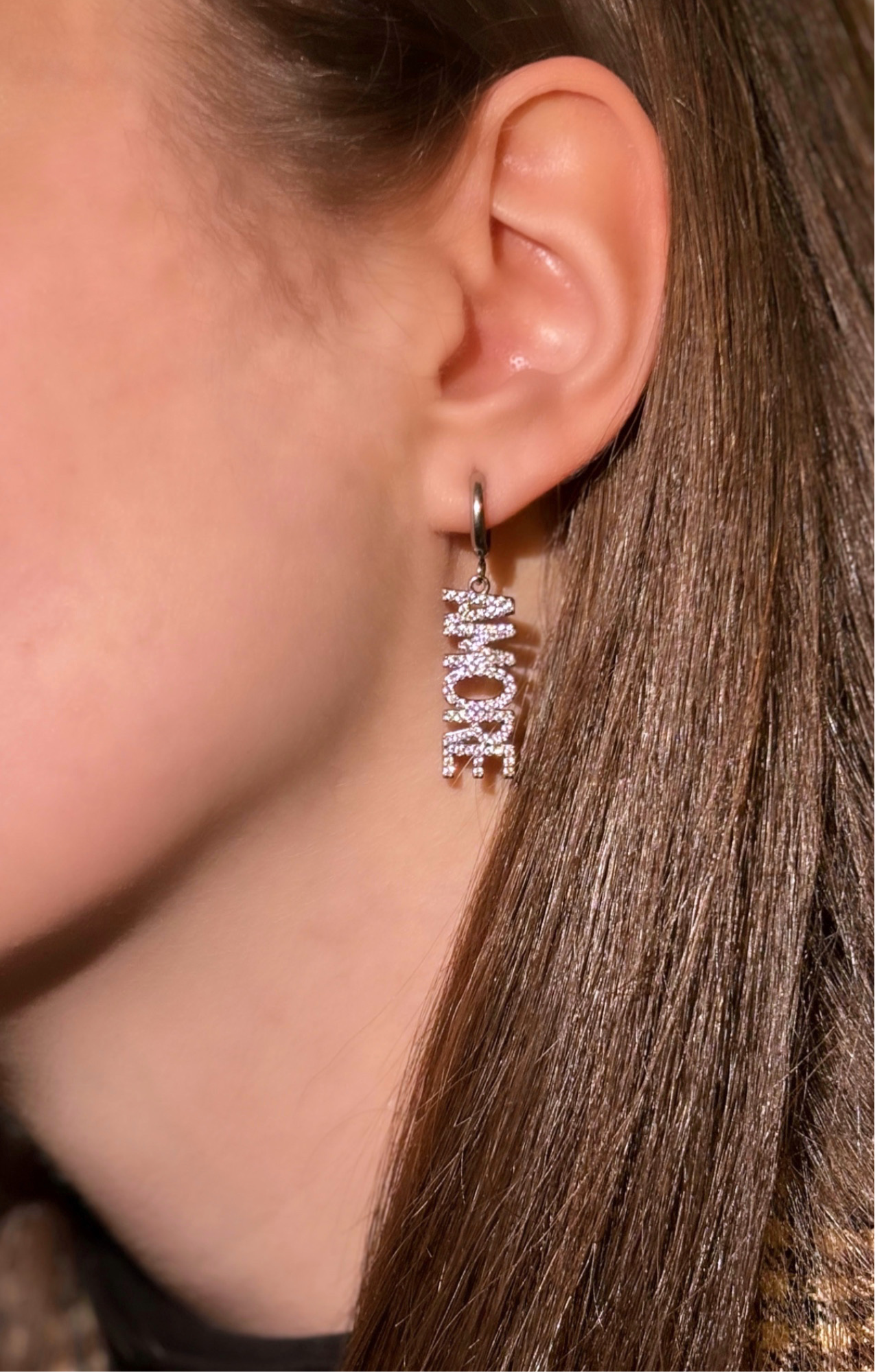 Monorecchino (orecchino singolo) in acciaio inossidabile anallergico per pelli sensibili con la scritta “Amore” piena di zirconi !