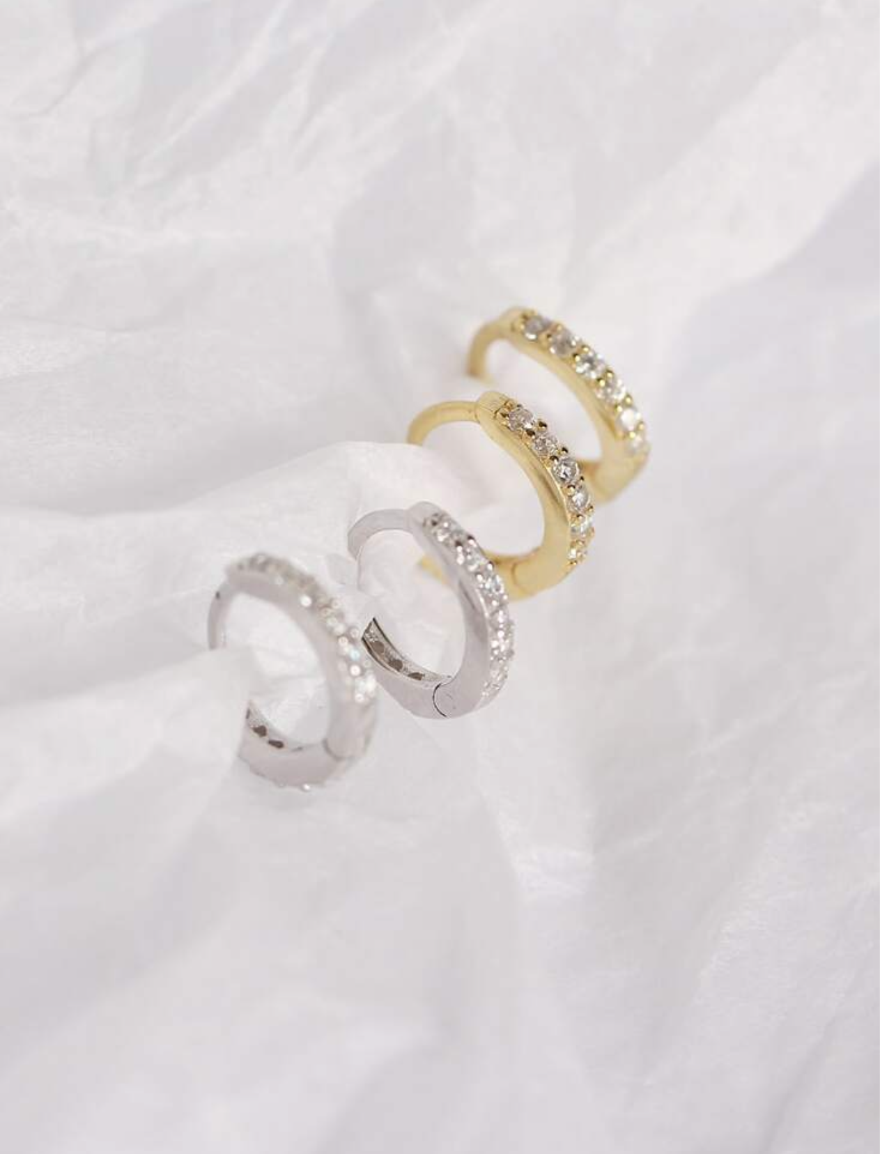 Orecchini cerchietto con zirconi disponibili sia in versione oro che argento in acciaio inossidabile anallergico per pelli sensibili
