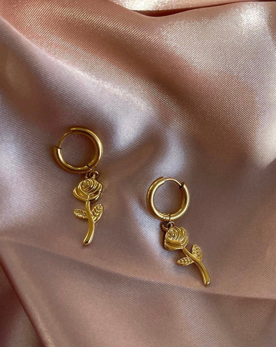 Orecchini a cerchietto in acciaio inossidabile dorato con rosa