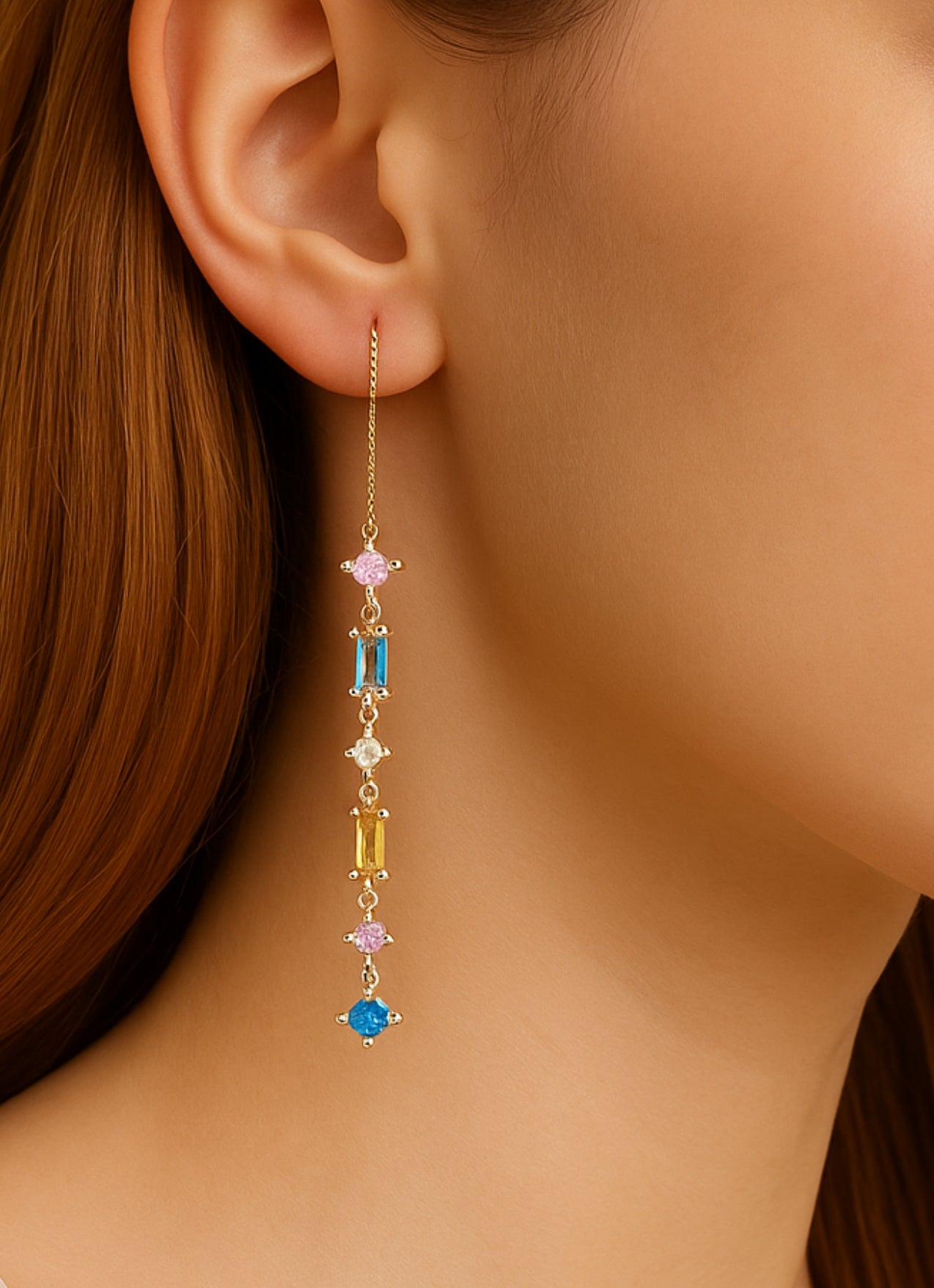 Un orecchino saliscendi con zirconi tondi e a baquette!